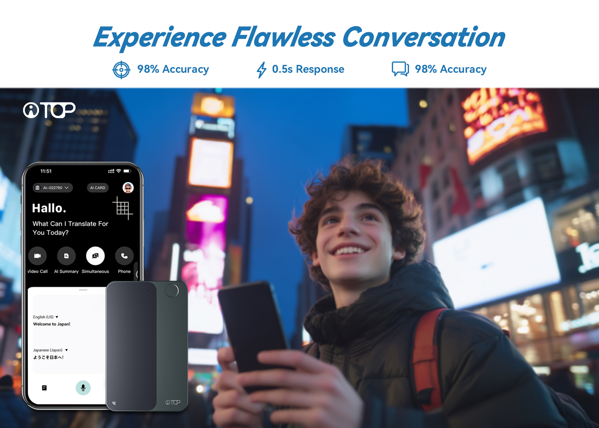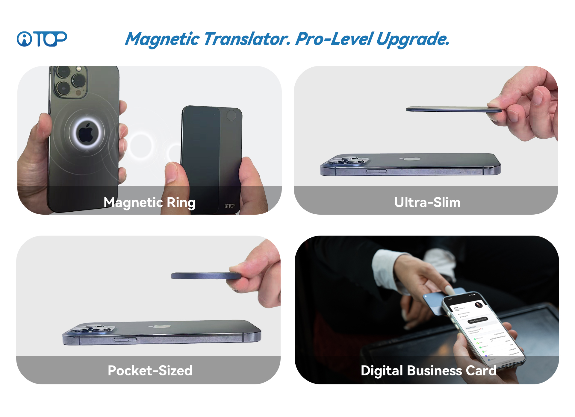 Ultra-slim translator instantly clips to your phone. Your pocket-sized interpreter for effortless communication on the move.